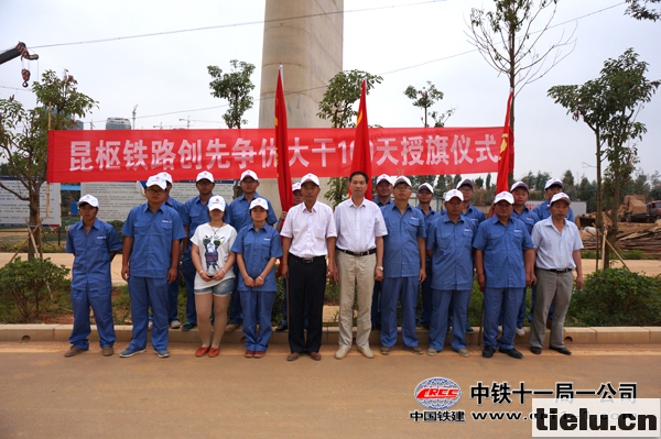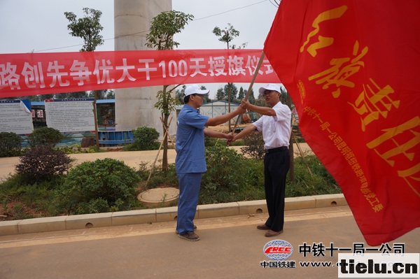 本站云南昆明讯:为充分发挥广大职工在施工生产中的主人翁地位,激发技术人员在生产经营攻坚战中的战斗热情,确保全面完成项目各项工作指标,6月5日上午,昆明枢纽项目部组织了三个工区相关人员参加了“大干百日暨创先争优授旗活动仪式”。仪式由项目部党工委书记宋泽成主持。