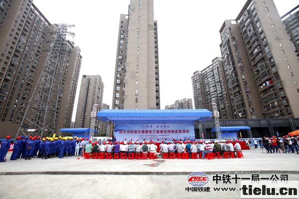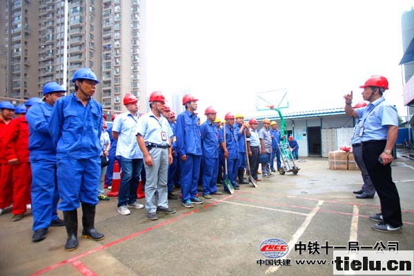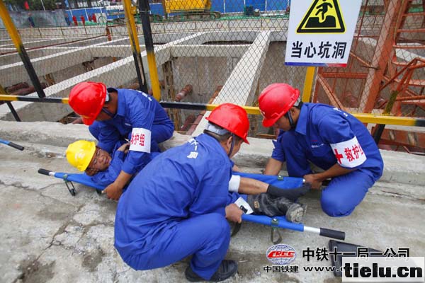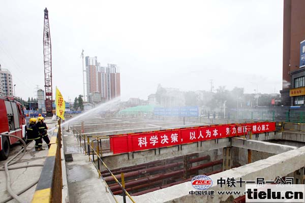 原来这是在中铁十一局武汉地铁3号线兴业路站项目施工现场举行的《武汉市轨道交通建设工程基坑坍塌应急演练》。
