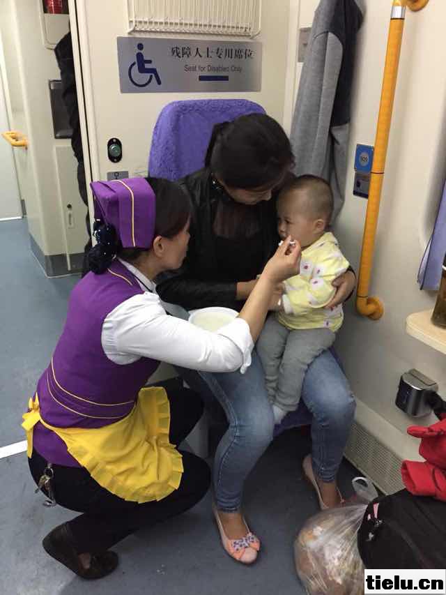 “哇……哇……哇……”正在硬座车厢卖晚餐的秦艳华被这声声嘶哑的孩子哭声吸引住了,顺着声音发出的位置看去,只见一位年轻的母亲满脸泪痕,正无措的看着怀里哭啼不止的孩子。身为母亲的秦艳华快步走到母子跟前轻轻的拍着宝宝并询问宝宝怎么了,为什么哭的这么厉害,再这样哭下去宝宝的嗓子就要哑了!宝宝的妈妈说:“本来我们是去哈密朋友家玩的,可是开车没多久就接到家里电话说,张掖老家出了急事,要直接赶去张掖,可是孩子非常挑食,带的食物只够他吃一顿的,突然延长的旅途把孩子饿着了,但因为挑食宝宝情愿饿的哭也不吃其它吃的,我都要心急死了”。听了宝宝妈妈的诉说,秦艳华说要不我回去给车长说说这情况,看给宝宝现熬点稠稀饭,看他吃不吃吧!说完就赶回了餐车将这一情况告诉了杨蕾车长。杨车长听后立即让餐车准备熬稀饭,自己亲自去15号车厢了解宝宝情况,安慰年轻的妈妈不要心急,我们一起来帮你照顾宝宝。半小时过后,秦艳华端着一碗放了白沙糖的粘稠稀饭来到母子面前,让妈妈抱着宝宝,自己亲自给宝宝一勺一勺的喂着,或许是宝宝感觉到了妈妈的心焦和阿姨们的关爱,又或许是被香喷喷的饭香味所吸引,居然一口一口的吃着喂到嘴边的稀饭。这时,年轻的妈妈终于露出了开心的笑容,周围的旅客也连声称赞,还是列车工作人员有办法啊!