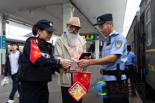 10月6日,国庆中秋双节叠加,铁路客流持续高位运行。武汉铁路公安局襄阳公安处襄阳站派出所民警坚守一线,用忠诚履职诠释责任担当,以无私奉献守护万家团圆,以实际行动表达对祖国的深切热爱。