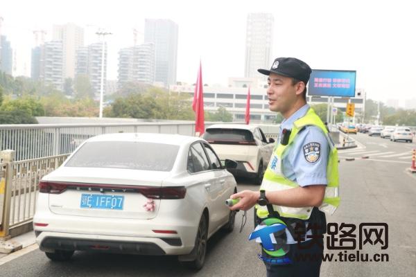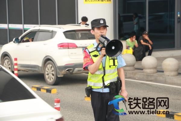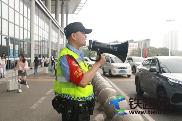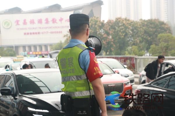(李奕冉)2025年国庆、中秋假期临近尾声,旅客纷纷踏上返程之路。10月7日,宜昌东火车站预计发送旅客5.3万人次,当日9时至11时,铁路车行平台车流量激增。为应对这一严峻挑战,襄阳铁路公安处宜昌东站派出所迅速行动,通过“现场疏导+大屏宣传”的形式,全力加强交通疏导工作。宜昌东站派出所加大警力投入,将4名警力分布在车行平台出入口、人行道等的各个关键部位,积极引导车辆快速通过、及时处理各类突发情况,综合指挥室密切关注平台客流动态,通过显示屏喊话系统,提醒长时间停留车辆及时驶离,保障道路安全畅通。