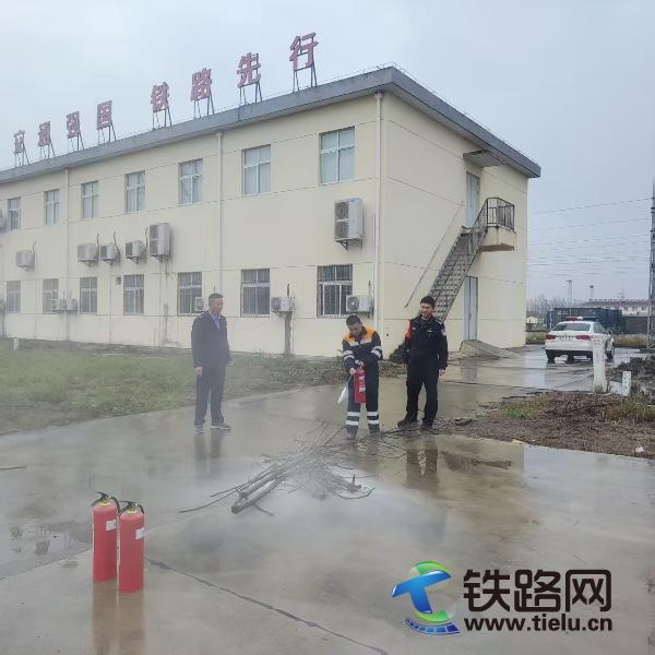 在铁路货场开展全流程、全要素消防实战演练。演练模拟仓库因电路老化突发火情,浓烟蔓延触发警报,铁路企业职工立即启动应急预案,在民警引导下用湿毛巾捂住口鼻,弯腰低姿沿疏散通道有序撤离。疏散结束后,民警现场演示干粉灭火器“提、拔、握、压”操作要领和消防水带连接技巧,采用“手把手教学+现场纠错”模式,组织职工分组开展灭火实操,确保每人都能熟练掌握应急处置技能。