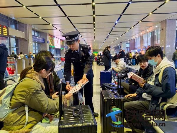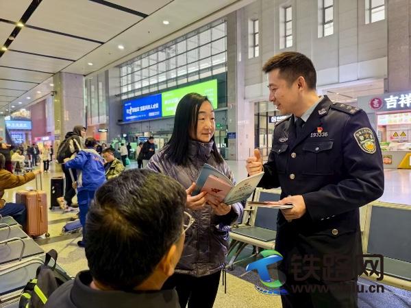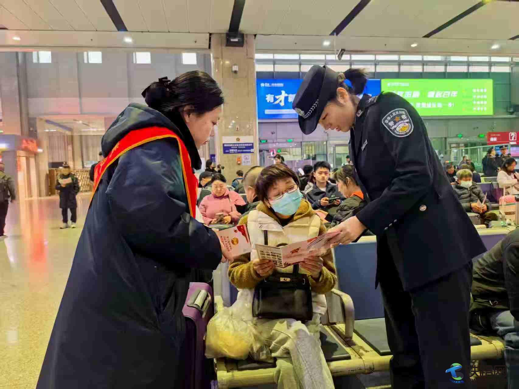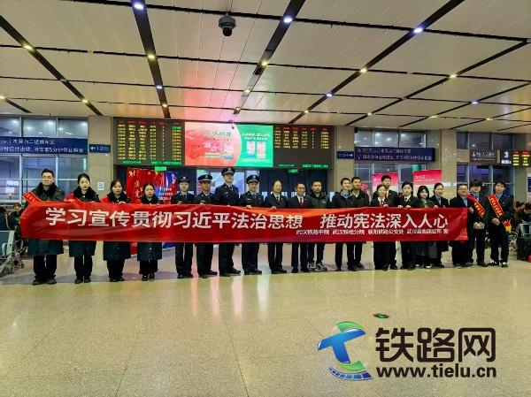 (李奕冉)2025年12月4日是第十一个国家宪法日,为深入学习宣传习近平法治思想,推动宪法精神走进旅客群众,襄阳铁路公安处宜昌东站派出所联合武汉铁路中院、武汉铁检分院、武汉局集团公司等单位,在宜昌东火车站候车室内开展“学习宣传贯彻习近平法治思想,推动宪法深入人心”宪法宣传活动。