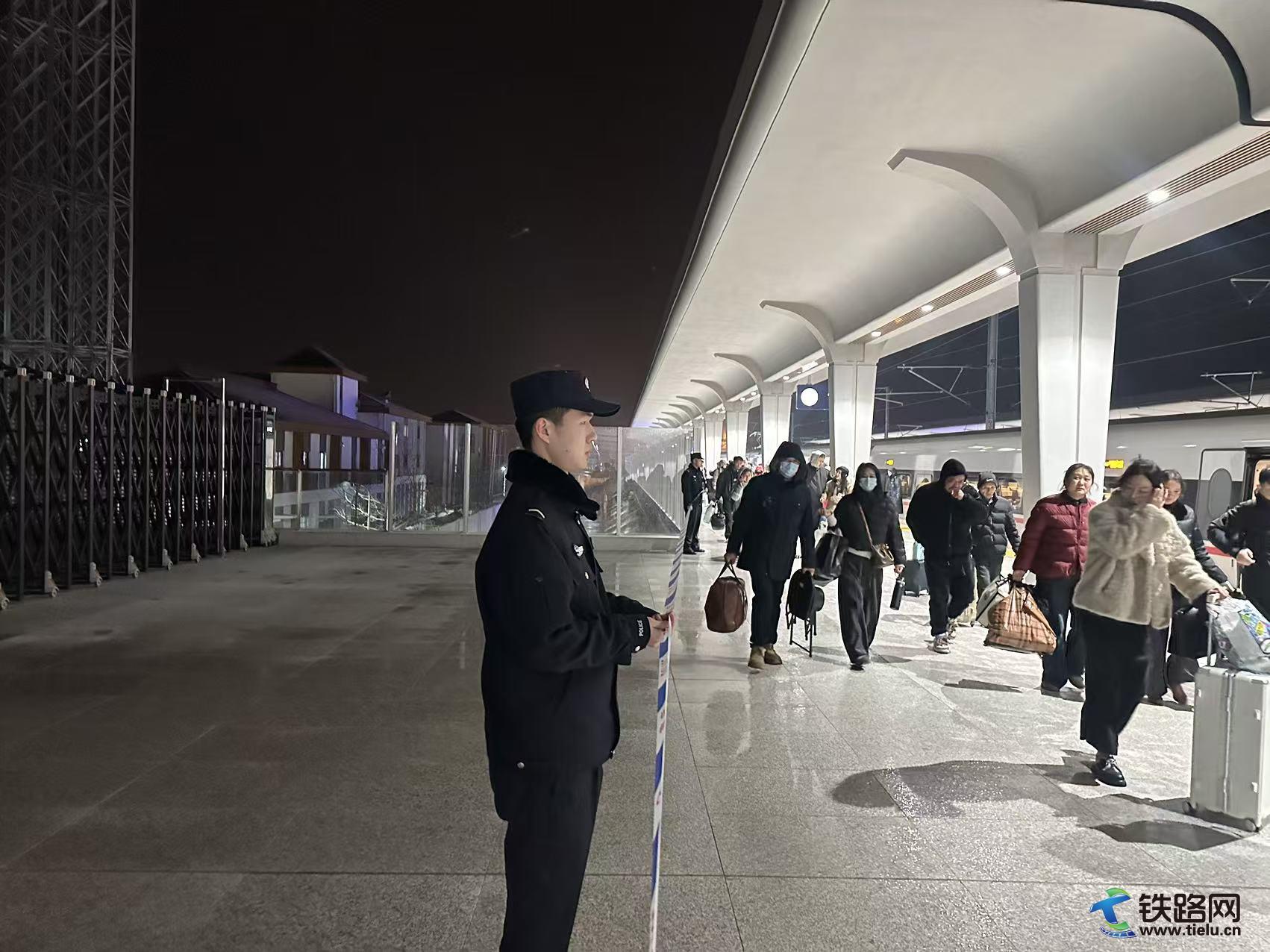 近日,钟祥地区气温骤降,普降大雪,为了保障铁路运输安全,维护旅客乘车秩序,襄阳铁路公安处钟祥站派出所全体民警以雪为令,闻雪而动,迅速投入到“战风雪、斗严寒、护安全”工作当中。钟祥站派出所组织在岗民警对辖区内重点区段、重点部位进行严密排查,他们一脚深一脚浅地缓慢前进,不顾风雪,排查整治各类安全隐患,全力守护治安秩序及旅客安全,他们的身影成为冰天雪地里最靓丽的“风警线”。1月19日晚,受雨雪冰冻极端天气影响,计划开往宜昌方向的G6825、G4213等多趟列车临时停运,导致近400名旅客滞留钟祥南站。为保障旅客顺利返程,钟祥站派出所迅速启动应急预案,协调钟祥市交通、公安、医疗等多部门协同联动,全力展开旅客转运及安置工作。
