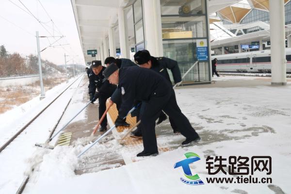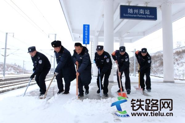 (:张馨雨)1月20日,湖北省随州地区迎来风雪天气,给铁路运输和旅客出行带来考验。襄阳铁路公安处随州南站派出所第一时间启动恶劣天气应急处置预案,组织干部民警联合车站工作人员,全力开展清雪除冰、秩序维护、治安防控和服务旅客等工作,确保了铁路安全畅通和旅客出行平安。
