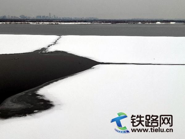 一场寒潮,见证了“四九”天的冰天雪地。高铁窗外,俯视大宁水库,冰水两重天,天然雕琢的冰面与雪景交相辉映,呈现出大自然的绮丽景观。