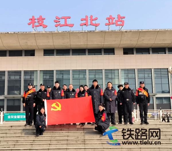 2026年春运首日,襄阳铁路公安处枝江北站派出所为护航春运平安,联合枝江北车站党支部一同开展主题党建活动,正式成立春运党员先锋队与团员突击队,将党建红与警察蓝充分融合,把服务与普法送到旅客身边,以党建引领筑牢春运安全服务防线,让党旗在春运一线高高飘扬。