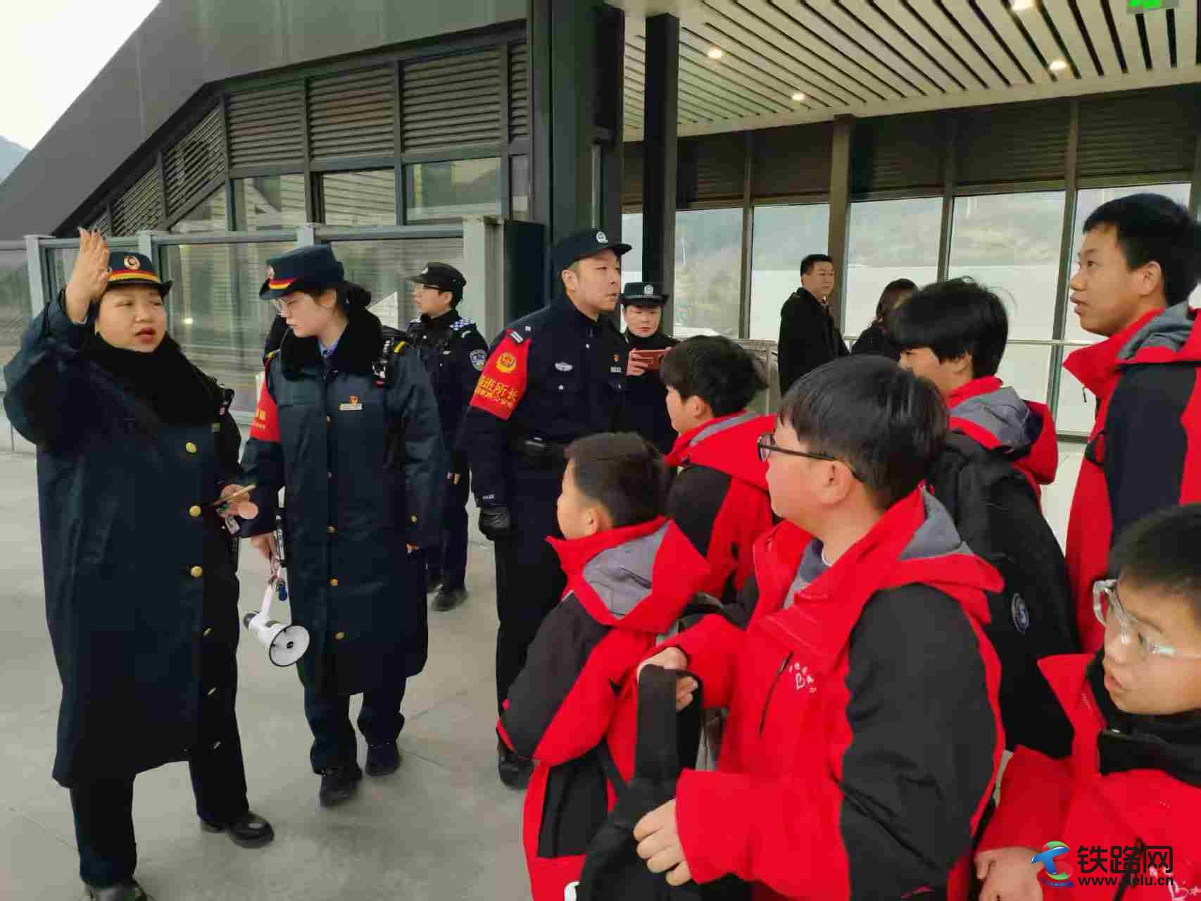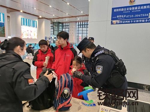 2026年2月3日上午,襄阳市50余名乡村中小学生乘坐高铁赴武汉开展寒假研学活动。为确保学生出行安全,保康县站派出所民警主动担当、暖心护航。