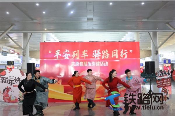 随后,公安处青城铁警乌兰牧骑与内蒙古自治区直属乌兰牧骑的精彩演出,让暖心氛围持续升温。快板普法、歌曲联唱、群舞等节目,将铁路安全知识、出行注意事项融入其中,让旅客在欢声笑语中掌握安全要点。与此同时,呼和浩特铁路公安处民警与首批志愿者分工协作,在候车大厅为旅客指引进站路线、解答购票疑问、开展法制宣传等服务,“警察蓝”与“志愿红”交相辉映,成为这个春运路上一道亮丽色彩。