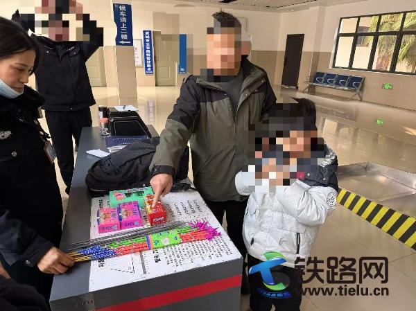 (洪旭紫阳)2026年春运迎来客流高峰,2月12日,一名旅客在应城站进站乘车时,因违规携带烟花爆竹被车站派出所民警当场查获,及时消除了一起铁路出行安全隐患。