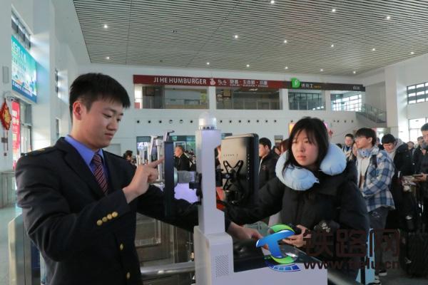“各位旅客,身份证刷闸机不成功的,走人工通道检票进站…”2月23日农历正月初七,在贵州省铜仁南高铁站候车室检票口,第一次参加铁路春运的张籽昂,一边熟练地进行提醒引导,一边操作设备验证旅客的乘车信息。