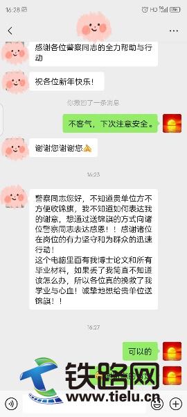 收到背包的那一刻,小张十分激动。她掏出手机,给民警发来长长一段信息:“遗失的电脑里有我的博士论文和所有毕业材料,如果丢了我简直不知道该怎么办,所以各位真的挽救了我的学业和心血!诚挚地想给贵单位送锦旗!1字里行间,满是失而复得的庆幸与感激。