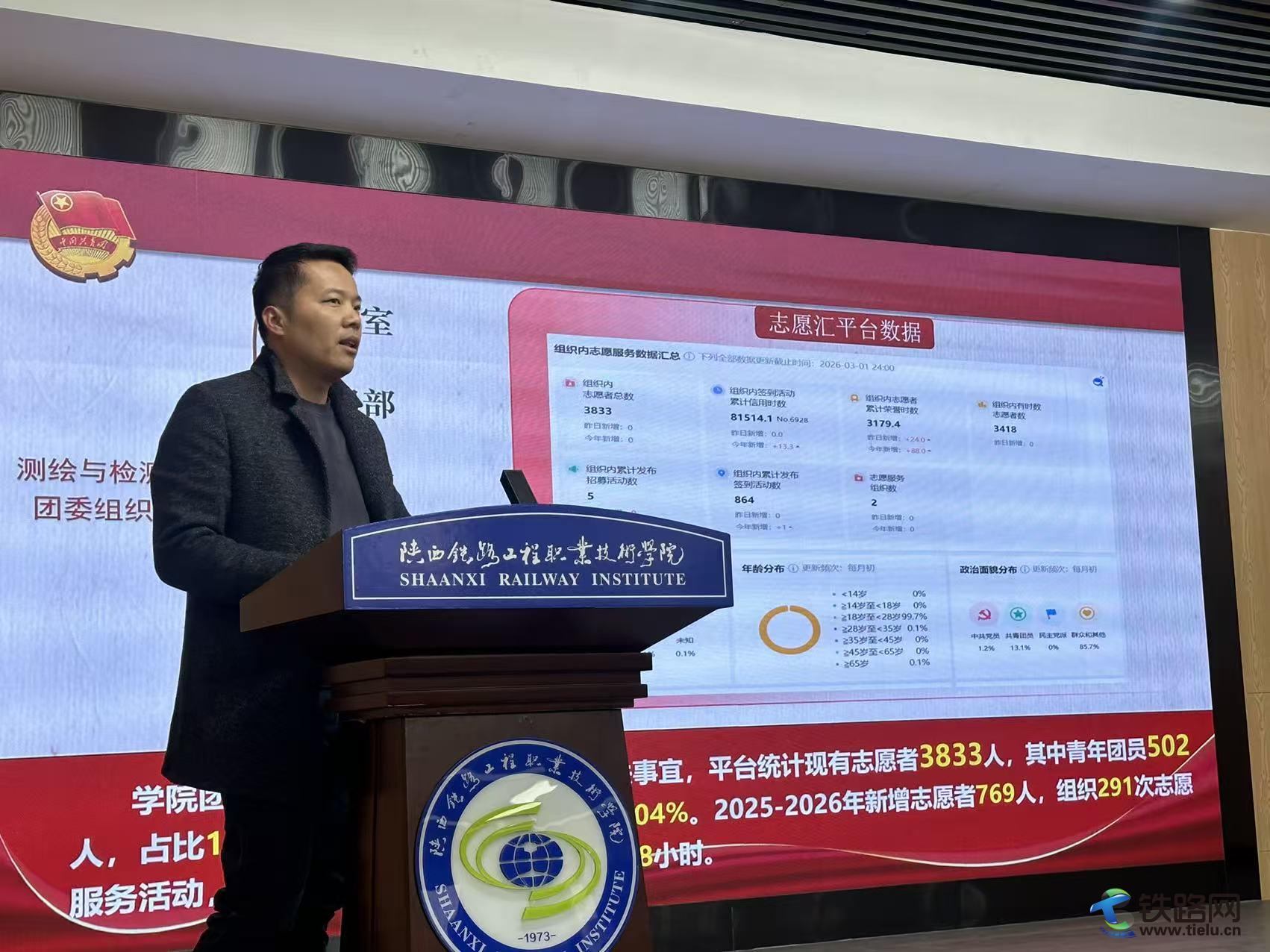 (李启康)为深入学习贯彻习近平总书记关于学雷锋志愿服务的重要指示,大力弘扬 “奉献、友爱、互助、进步” 的志愿精神,引导广大师生积极投身志愿服务实践,3月4日,陕西铁路工程职业技术学院(以下简称“学院”)在高新校区诚信厅举行2026年学雷锋志愿服务活动启动仪式,学生处部门负责人、各学院团委书记、副书记、团委全体专兼职团干参加活动。