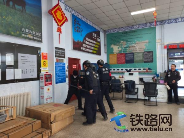 近日,桑根达来站派出所联合正蓝旗桑根达来镇派出所,在桑根达来车站候车室开展反恐处突联合实战演练。